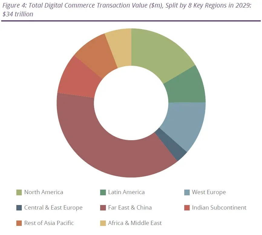 Οι αναδυόμενες αγορές, όπως η Λατινική Αμερική και η Ασία-Ειρηνικός, αναμένεται να είναι οι κύριοι μοχλοί ανάπτυξης. Οι περιοχές αυτές εμφανίζουν αύξηση στην πρόσβαση στο διαδίκτυο και στις τοπικές μεθόδους πληρωμής, με την ανάπτυξη των υποδομών να οδηγεί την υιοθέτηση του ψηφιακού εμπορίου.