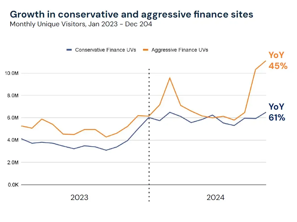 Η οικονομική αστάθεια οδήγησε σε δύο διακριτές τάσεις: οι συντηρητικοί καταναλωτές στρέφονται σε εργαλεία προϋπολογισμού, ενώ οι πιο τολμηροί επενδύουν σε κρυπτονομίσματα και εναλλακτικές επενδύσεις. Και οι δύο κατηγορίες παρουσίασαν ισχυρή ανάπτυξη το 2024.